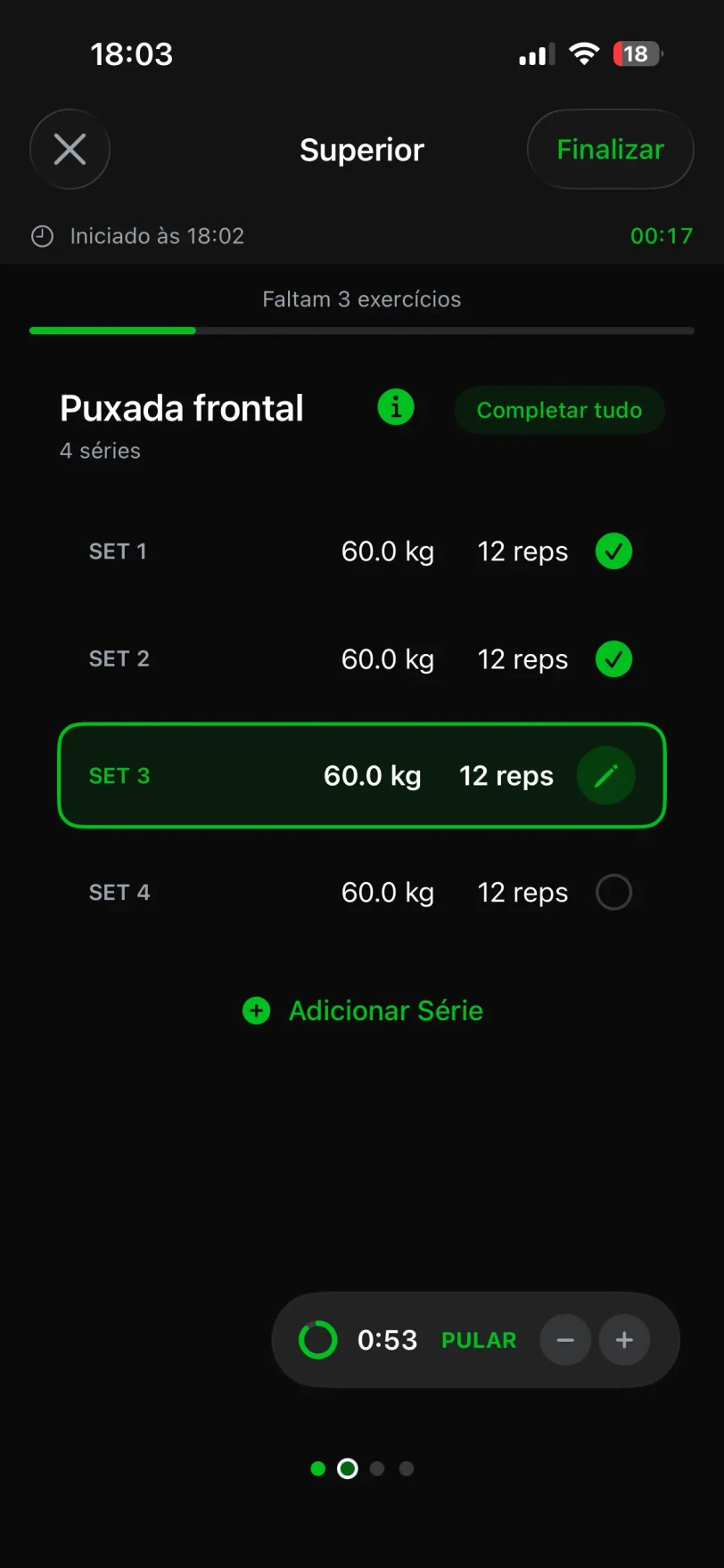 Registre séries, repetições e pesos com poucos toques. Acompanhe seu treino direto na tela bloqueada com Live Activities. Timer de descanso incluso pra você não perder o tempo entre séries.